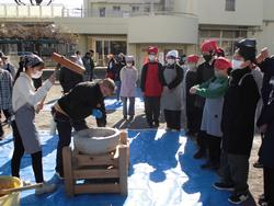 各町内会の皆さんがそれぞれもちつきを行い、星の子の皆さんにも体験をさせてくださいます。そして、ついたおもちを美味しく食べるだけでなく、地域・家庭・学校がふれあう貴重な機会となっています。