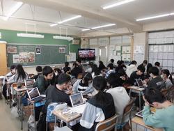 本日から、6年生が1クラス学級閉鎖となりました。教室には誰もいませんが、端末を使用して国語と算数の授業を行いました。(上段)