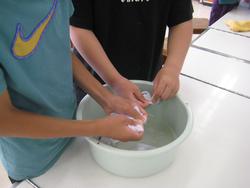 少し前ですが、家庭科の学習で、手洗い洗濯の実習を行いました。