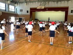 音楽に合わせて縄を動かしたり、いろいろな技に挑戦したり、一生懸命取り組んでいます。