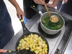 副菜も彩りや栄養のバランスを考えながら、どの班も丁寧に作ることができました。