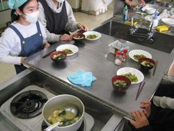 みそ汁には、班ごとに工夫を凝らした具材が入り、個性豊かな味わいに仕上がりました。