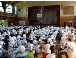 今の学年となって初めての避難訓練でした。震度6の大地震が来たことを想定して、体育館に避難しました。「おかしも」を守って避難し、整列してからも先生の話をしっかりと聴くことができました。避難のあとは、引き取り訓練となり、今日はお家の方と一緒に下校しました。