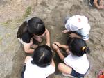 図工の学習で、校庭の砂場で、山を作ったり、穴を掘ったり、水を流したり、砂に親しむ活動を行いました。途中、ホースで水を流したら、気持ちよさそうにしていました。