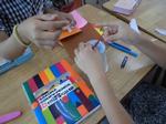 2年生の図工では、手や指を使って絵の具の感触を楽しみました。様々な色の混ざりを感じながら描いていました。また、生活科では「遊んでためして工夫して」では、身辺材を使って、工夫しておもちゃを作っていました。