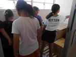 社会科の学習で自然災害について学んでいます。この日は、学校の中にある防災備蓄庫を見て回りました。食料やベッド、トイレなどどんなものが備えられているか、確認していました。車いすや自転車がなぜ備蓄されているのか、どうして3階にも備蓄庫があるのか、質問していました。