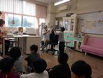 「よろしくお願いします」のあいさつの後、歯科検診の受け方を先生から聞いていました。先生が口の中を見やすいように、言われたことがきちんとできていました。