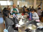 この日は、おきつる協会 横浜・鶴見沖縄県人会の方々に来校していただき、沖縄料理の「ゆし豆腐」と「じゅーしー」を一緒に作っていただきました。