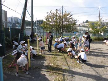 校庭では白組が草を取っていました。