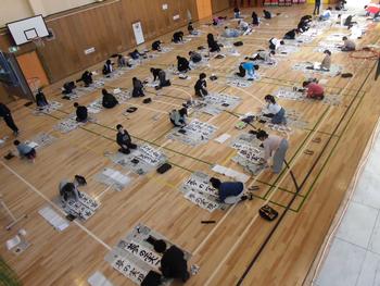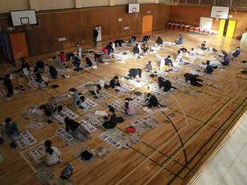 1月9日には、3,4年生が体育館で書初めをしました。
