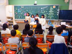 いよいよ冬休みまであと4日となりました。図書室前にはクリスマスとお正月のきれいな飾りがあり、わくわく感が高まります。4時間目に琴の音色が聞こえて行ってみると、個別級のみんなが「さくらさくら」の演奏をしていました。ここ数か月にわたる練習で、みんなとても上手になっていました。