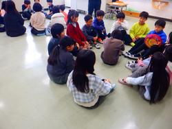 今日は普段の授業では見られない様子がたくさん見られる一日でした。3年生は七輪体験をしていました。落ち葉や牛乳パックなどを使って火をおこしながら、その難しさを感じていたようです。4年生は敬寿園さんのご協力のもと、車いす体験をしました。操作の難しさや乗っている人の気持ちを感じることができました。1年生は2年生を招待してお祭りをしていました。これまで1年生だけでお祭りをしてきた経験を生かして、元気に自信をもって2年生に声をかける姿が見られました。