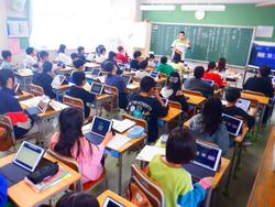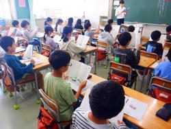 4年生は詩の音読をしていました。姿勢に気を付けて、しっかりと音読しようとする姿が見られました。6年生も詩の学習をしていました。作者の気持ちや表現の工夫を考え、タブレットに入力していました。次の時間は読み取ったことを生かして音読する予定です。タブレットの録音機能を使って自分の音読を確認し、よりよい音読を目指していく計画となっていました。