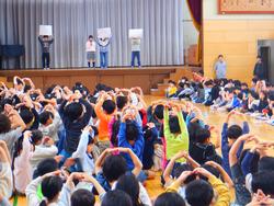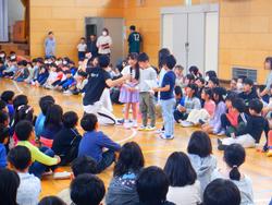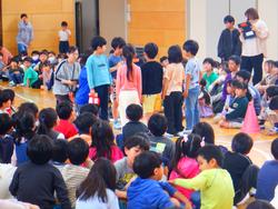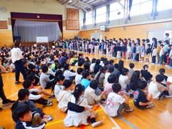 1年生が全校児童との初の対面となる「1年生とふれあう会」が開かれました。6年生と手をつないで入場すると校歌の披露や和泉小クイズで楽しみました。2年生からは昨年育てたアサガオの種をプレゼントされ、「なにかわからないことがあったら何でも聞いてね。」と声をかけてもらっていました。