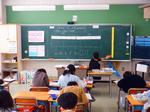 3年生は分数の学習をしていました。はじめて1mを超えた場合の分数について考えていました。分母は5?6?10?と悩みながら、最終的には1mを5等分しているので5だということに気づきました。1年生の国際理解教室では、アルゼンチンで有名な漫画のキャラクターを紹介しながら、そのキャラクターに使われている色を英語で伝える学習をしていました。