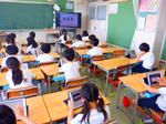 5年生の算数では、ある小数の10倍、100倍、1000倍の数を考える学習をしていました。しっかりとノートをとりながら位取りについての学びを深めていました。隣のクラスの社会の授業では、実際に地球儀を目の前に置き、緯度や経度などをみながら世界の国々の位置を確かめていました。2年生はこれからの野菜作りに備えて、育てるうえでのポイントなどをタブレットに入っている本を見ながら調べていました。それぞれ学習内容に合わせたスタイルで学習が進められていました。