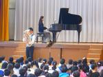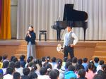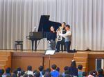 今日の1時間目はエバリーのお二人をお招きして、1~4年生対象にミニコンサートをしていただきました。今年はピアノとユーフォニアム担当のお二人が来てくださいました。トルコ行進曲やディズニーメドレーなどおなじみの曲の演奏や、楽器体験コーナーなどがありました。アンコールでは校歌をみんなで元気いっぱいに歌いました。本物の音楽に触れる貴重な機会となりました。