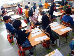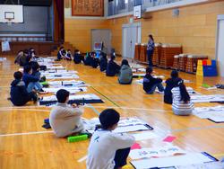 今日明日と各学年ごとに書き初めがあります。今日は体育館で5、6年生が、教室で1年生が行っていました。一年の初めに当たり、一人一人が思いを込めて真剣に取り組んでいました。