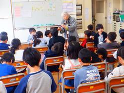 3年生は分数の学習をしていました。はじめて1mを超えた場合の分数について考えていました。分母は5?6?10?と悩みながら、最終的には1mを5等分しているので5だということに気づきました。1年生の国際理解教室では、アルゼンチンで有名な漫画のキャラクターを紹介しながら、そのキャラクターに使われている色を英語で伝える学習をしていました。