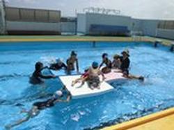 初めは怖がって半べその子が多かった子供達も、しばらくするとキャーキャーと楽しそうです。そのうち潜ったり、泳いだり、水遊びを堪能しました。