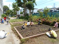 生活科で、学年の畑にさつまいもの苗を一人一人が植えました。これから大きなさつまいもに育つようにお世話を続けていきます。