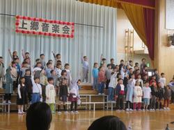 一年生にとって初めての上郷音楽会があり、「おもちゃのチャチャチャ」と「青い空にえをかこう」の2曲を披露しました。「声が低くならないようにしよう。」「指揮をよく見て歌おう。」と意識しながら練習し、当日は今までで一番の演奏をすることができました。また、2,3年生の演奏を聴いて、「鍵盤ハーモニカがすごい。」「リコーダーの音が体育館に響いていたよ。」「歌声がすてきだった。」など、憧れもたくさん感じたようでした。