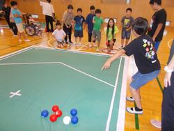 ボッチャという競技は、年齢、性別、障がいの有無にかかわらず、すべての人が一緒に競い合えるスポーツで、両チーム全6球ずつ投げ終えた時点で基準となる白球に一番近い位置にある球の色のチームが勝利となるため、最後までどちらが勝利するかわからないところが面白い点です。