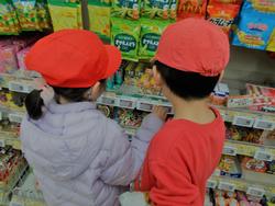 当日はグループごとにお店へ行き、待っているグループの児童は近くの公園で鬼ごっこや遊具で遊んで過ごしました。店内では、自分の買う商品を見つけようと棚をよく見ながら歩いたり、「ここにあるよ」と友達と声を掛け合ったりする姿が見られました。協力して商品を探しながら、楽しくお買い物をすることができました。レジでは、店員さんに商品を渡し、お金を支払ってレシートと商品を受け取るまでのやり取りにも挑戦しました。すべてのグループのお買い物が終わった後は、みんなでレジャーシートを広げて「お菓子パーティ」を行いました。自分で選んで買ったお菓子を嬉しそうに見せ合ったり、「おいしいね」と友達と話したりしながら、楽しい時間を過ごすことができました。子どもたち一人一人にとって、思い出に残る学習となりました。