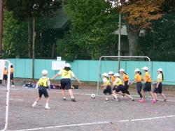 前半はドリブルやシュートのコツを教えてもらい、後半は「コーチ+教師チーム」と試合をしました。みんなとても楽しそうに活動に取り組んでいました。