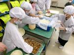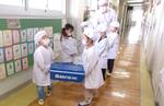 1年生も食器や食缶を運んだり、盛り付けたりと頑張っています。