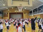 今日は雨だったので、体育館で練習。細かい手の動きを確認していました。校庭とは一味違った迫力がありました。本番、晴れますように☀