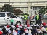 今日は、交通安全教室を行いました。保土ケ谷警察、交通安全協会、見守り隊の皆様のご指導のもと、「死角実験」「巻き込み・衝突実験」などを見せていただき、飛び出しの危険や交差点での立ち位置などを学びました。また1年生が道路の歩き方、4年生が自転車の乗り方を教えていただきました。交通安全についての意識が高まった学びになりました。