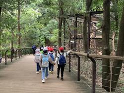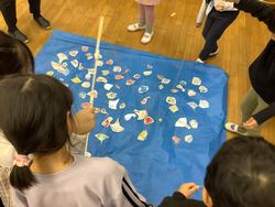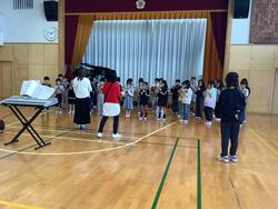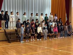本日、旭公会堂で旭区児童音楽会に参加しました。10月27日月曜日の音楽朝会を上回るすばらしい発表でした。とてもきれいな歌声、リコーダーのきれいな音色が旭公会堂に響き渡っていました。本校が参加した午後の部には4校が参加しました。他校の演奏を聴いて学んだこともたくさんありました。旭区児童音楽会の運営に携わってくださった皆様、本当にありがとうございました。 いよいよ明日が旭区児童音楽会本番です。3年生と4年生が体育館で前日練習をしていました。音楽朝会で全校児童や保護者の皆様に発表した後、本番に向けて、さらによい発表になるように考えながら二日間練習をしてきたとのことでした。その成果があり、しっかり口を開けて、よりいっそう伝わるように意識している様子が見られました。明日もがんばってほしいと思います。 2年生が「おもちゃランド」を開催し、1年生を招待しました。2年生はこの日のために、グループごとに手作りのおもちゃを準備してきました。1年生が笑顔で遊ぶ姿に2年生は達成感でいっぱいの様子でした。遊びを通して思いやり、伝える力、協力する大切さを学んでいることに大変うれしく思いました。子どもたちの成長が感じられる心温まるひとときでした。 横浜市では、特別支援学校で学ぶ子どもたちが、お住まいの地域の小・中学校の行事や学習などに参加する副学籍による交流教育の取組を行っています。お住まいの地域の小学校を「副学籍校」として指定し、学校行事や授業に参加し、交流を深めます。本校では若葉台特別支援学校に在籍する1年生児童と本校の1年1組児童が交流をしました。互いに初めての交流でしたが、関わりを楽しんでいました。思いやりある行動もたくさん見られました。共に育ち、共に学んでいくための大きな一歩でした。関わってくださった皆様、ありがとうございました。今後ともどうぞよろしくお願いいたします。 本日の音楽朝会は4年生と3年生の発表でした。はじめに全体で「あの青い空のように」を合唱した後に、4年生と3年生がリコーダー奏と合唱を発表しました。保護者の方も多数参観してくださりました。ありがとうございました。今週水曜日の旭区児童音楽会本番でも力を出し切ってほしいと思います。 10月24日に1・2年生合同でズーラシアへの遠足に行ってきました。1・2年生の保護者の皆様には当日にすぐーるで様子をお伝えさせていただきました。学校ホームページにも当日の様子を掲載いたします。この遠足では2年生が1年生の手を引きながら園内を案内し動物たちを一緒に見て回っていました。動物を見て「すごい!」「かわいい!」と目を輝かせる1年生を見ながら2年生もとっても嬉しそうにしていました。年下の子を思いやる気持ちや、リーダーとしての責任感を育む、素敵な一日となりました。 本日、中休みに「なかよし班」ごとに体力アップを行いました。すっかり涼しくなり、肌寒いくらいの気候になりました。短縄の時間には自分に合った跳び方を選んでいました。中には二重跳びなどの難しい技にチャレンジしている児童もいました。長縄の時間になると高学年児童が回し手になりみんなで跳び始めました。回し手の技術はどんどん向上していて、回し方にも思いやりを感じました。あらためて「なかよし班」ごとに行う意義を感じました。 クローバー探しゲームとは、てのひらにクローバーを書いている人を探すゲームです。ゲーム前に各学年何人かの てのひら にクローバーを書いておき、ゲームが始まったら異学年の人とじゃんけんをして負けた人は買った人に自分のてのひらを見せるゲームです。自分からどんどん誘ってクローバーををたくさん見つけていました。 学校給食のソース焼きそばは、お祭りや家庭の焼きそばとは一味違います。食感も少し異なります。よこはま学校食育財団のホームページのレシピを読みますと、豚肉、にんじん、たまねぎ、もやし、キャベツ、にら等の具材は通常通り炒めますが、麺は180度~200度の油で揚げているとのことです。麺を油で揚げることで、中までしっかり火が通り、具材と絡めた時にしっかりと水分を吸収するようになるとのことです。お祭りや家庭の焼きそばもとてもおいしいですが、調理方法を工夫している給食の焼きそばもどこか懐かしいやさしい味でとてもおいしいです。野菜もたっぷり入っていて栄養満点のソース焼きそばです。子どもたちには残さず食べてしっかりと栄養補給してほしいです。 10月21日の献立 ロールパン ぎゅうにゅう ソースやきそば ちゅうかあえ グレープゼリー 10月18日(土)に令和7年度地域総合防災訓練を行いました。本校児童は2時間目までに防災に関係する授業を学年に応じた内容で実施した後、保護者による引き取り訓練を行いました。校庭に保護者と児童が地区ごとに整列し、地区ごとの担当教員と一緒に見学・体験コーナーをまわりました。災害について学ぶとても良い機会をいただき充実した一日に