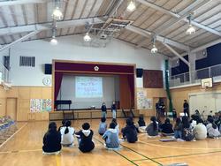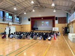12月4日から10日は「人権週間」です。本校では、人権について考える機会として、さまざまな活動を行っています。本日、体育館で人権集会を開き、全校で盲導犬に関する動画を視聴しました。これは、12月9日に予定している人権学習会(盲導犬協会の方をお招きする会)に向けた事前学習の一環です。動画を通して、目の不自由な方の生活や盲導犬の役割について理解を深めることができました。これからも、人権を大切にする心を育んでいきたいと思います。