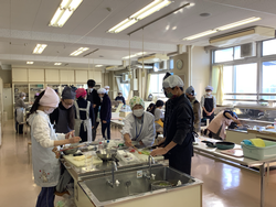 6年生が一人ひとり異なる献立を考え調理実習を行いました。同じ献立を一斉に作る活動と異なり、指導者が全体を把握しながらその都度指示を出すことはできません。自力解決しなければならない中、意欲的に調理する姿はとても頼もしく成長を感じました。地域ボランティアの方が3名来校してくださり、調理のコツを教えていただきながら安心して活動をすすめることができました。完成した料理の味は格別だったようです。地域の方々との温かい交流もあ、忘れられない思い出になりました。