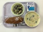 9月8日(月)むぎごはん ぎゅうにゅう ごじる ツナそぼろ ごまじょうゆあえ