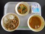 12日むぎごはん ぎゅうにゅう にくそぼろ ごまじょうゆあえ のっぺいじる