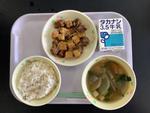 10月10日ごはん ぎゅうにゅう あげぎょうざ ゆでやさい タンタンスープ
