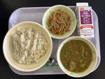 9日むぎごはん ぎゅうにゅう いりどり かきたまじる こんぶのつくだに