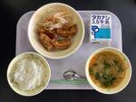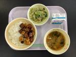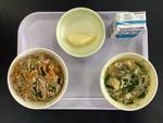 10月10日ごはん ぎゅうにゅう あげぎょうざ ゆでやさい タンタンスープ