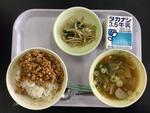 10日ごはん ぎゅうにゅう なまあげのそぼろに からしじょうゆあえ