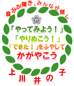 <学校教育目標>自分が輝き、みんなが輝く上川井の子