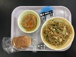 10月10日ごはん ぎゅうにゅう あげぎょうざ ゆでやさい タンタンスープ