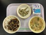 27日ごはん ぎゅうにゅう かわりきんぴら つみれじる ごましお