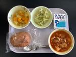 26日はいがパン ぎゅうにゅう とりにくのトマトシチュー キャベツサラダ ミックスフルーツ