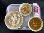 18日ごはん ぎゅうにゅう はるまき ちゅうかあえ タンタンスープ