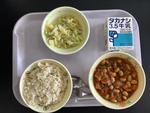 19日むぎごはん ぎゅうにゅう とりごぼうごはんのぐ はまっこキャベツナ みそしる