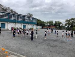 昨日までの暑さを忘れるほど、冷涼な気候の朝です。今年度もいよいよ体力アップが始まりました。本日、中休みになかよし班ごとに集まり長縄に取り組みました。班のみんなと気もちを一つに協力し合っていました。熱中症のリスクが減少してきたこの季節に、感染症が増加傾向になる冬に備えて、みんなで体を動かし、体力向上と健康増進に努めていきたいです。