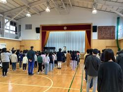 前回はオンラインでの実施でしたが、今年最後の朝会は感染症等の流行も見られなかったので集合で行いました。やはり集合の朝会はお互いに見合える良さがあります。今後も感染症等の対応に気をつけながらもできる限り集合朝会を行っていきたいと考えております。