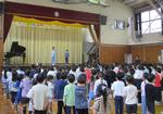 10/14(火)後期始業式が始まりました。4年生代表児童が後期の目標を発表しました。「漢字を頑張りたい。」「給食を残さず食べたい。」などの意気込みを発表しました。校長先生からは、4つの「あい」についての話がありました。後期もどうぞよろしくお願いします。